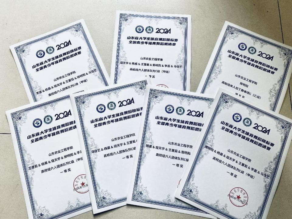 近日,由食品科学与工程学院杨晨、马佳艺,商学院李嘉、邢明阳,国土资源与测绘工程学院寇天宇、资源与环境工程学院王薏茹等6名同学组成的校体育舞蹈队,在基础课教学部李永振、孟鑫老师的带领下参加2024年山东省大学生体育舞蹈锦标赛。bat365学子奋勇拼搏、突破自我,展现出扎实的基本功与团队默契,在高校甲组6人团体队列组斩获冠军,荣获团体一等奖,并获得体育道德风尚奖。