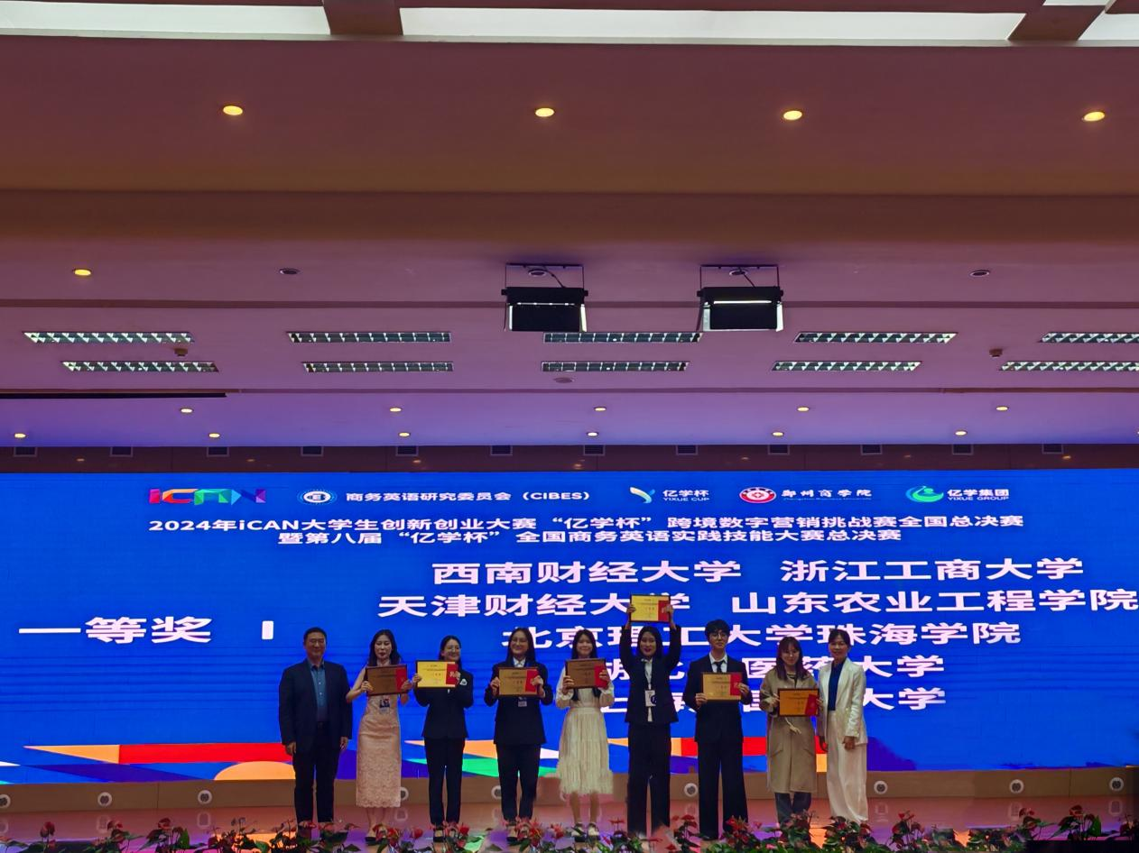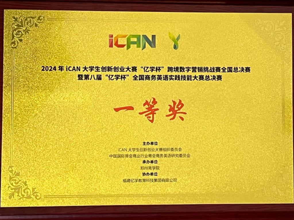 11月16日,2024年iCAN大学生创新创业大赛“亿学杯”跨境数字营销挑战赛全国总决赛暨第八届“亿学杯”全国商务英语实践技能大赛总决赛在郑州商学院落下帷幕,由bat365人文学院王洁成、吕亚男老师指导的spotlight团队在全国总决赛31支参赛队伍中脱颖而出,荣获全国一等奖。