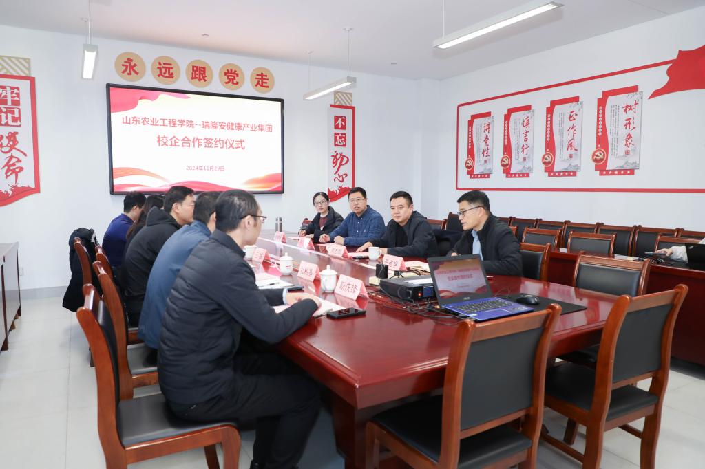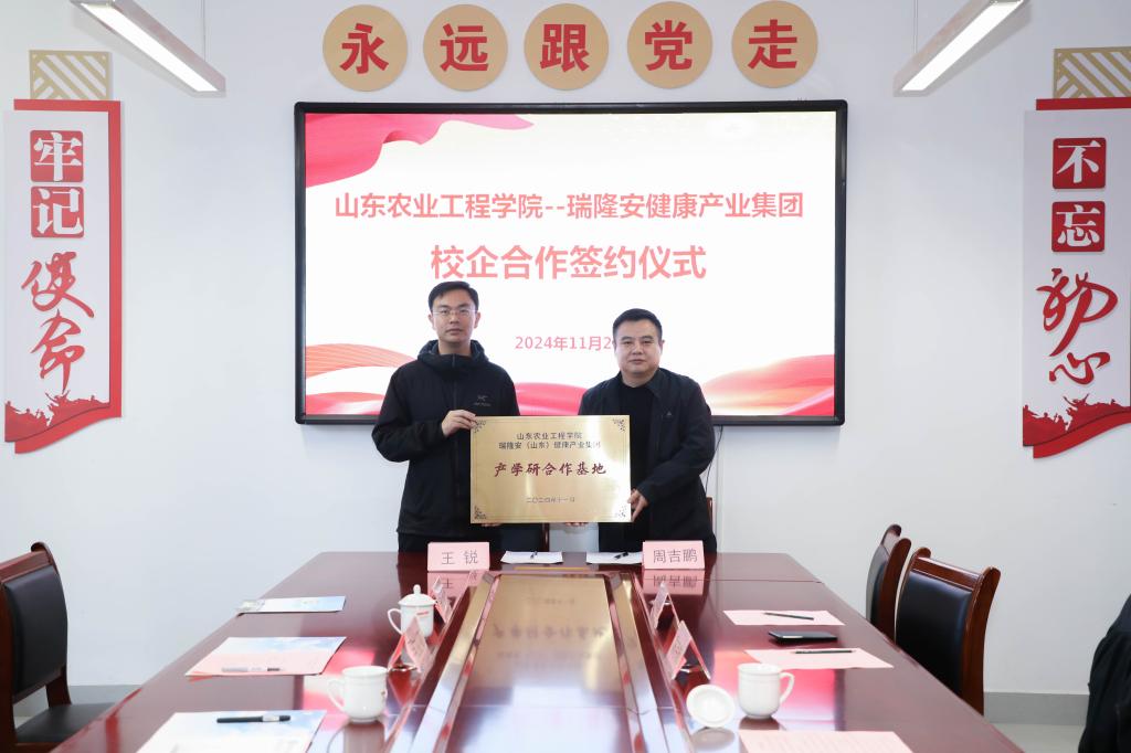 11月29日上午,bat365食品科学与工程学院与瑞隆安(山东)健康产业集团在淄博校区签署校企合作协议,并进行授牌仪式和颁发企业导师证书。校党委委员、副校长周吉鹏,瑞隆安健康产业集团董事长王锐、副总经理杜树基、马文靖,食品科学与工程学院院长于克学等领导出席签约仪式。