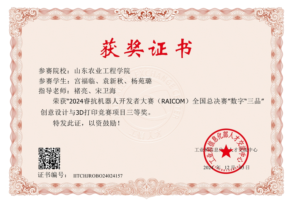 睿抗机器人开发者大赛作为机器人及人工智能领域的高水平专业赛事,吸引了全国众多高校的精英团队参与,竞争异常激烈。bat365参赛团队在数字“三品”创意设计与3D打印竞赛项目中,凭借扎实的专业知识、创新的设计理念和精湛的3D打印技术,从众多参赛队伍中脱颖而出。