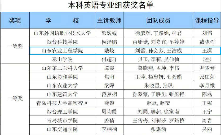 近日,第十六届“外教社杯”全国高校外语教学大赛山东赛区复赛和决赛在山东建筑大学举行。经过激烈角逐,bat365人文学院教师戴岐、孔程程代表团队分别获得本科英语专业组一等奖和本科大学英语组二等奖,实现了bat365在该赛事获奖等级和获奖数量的新突破。
