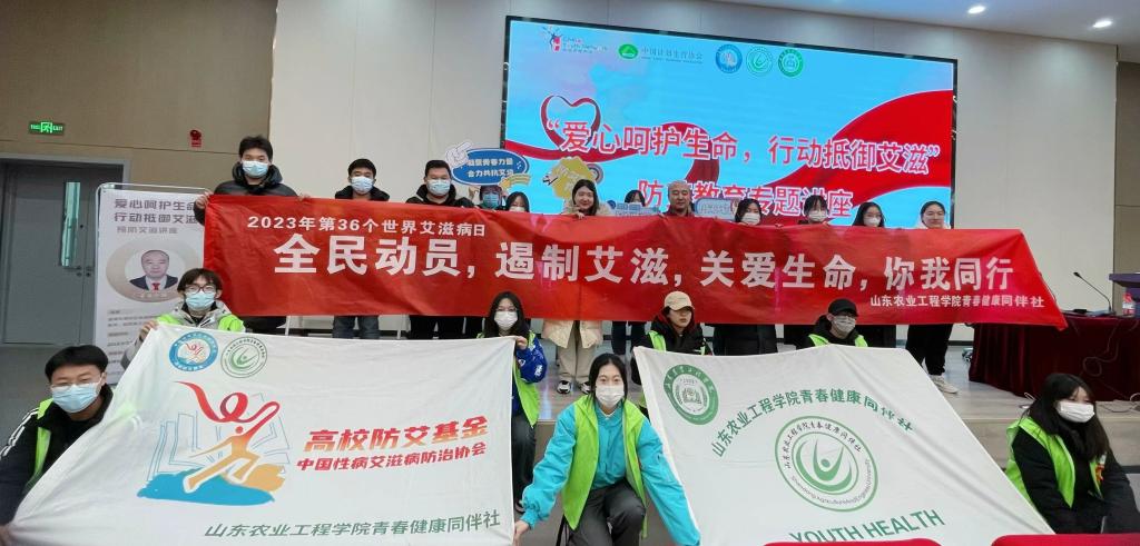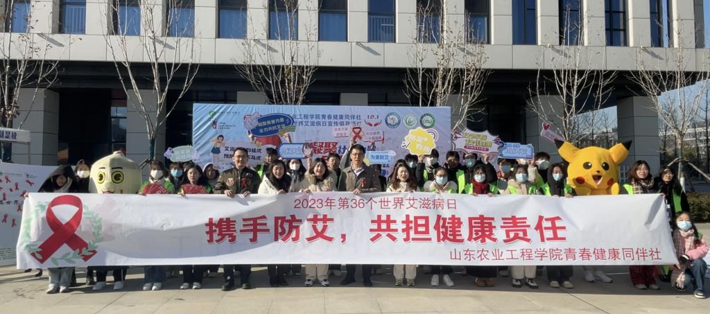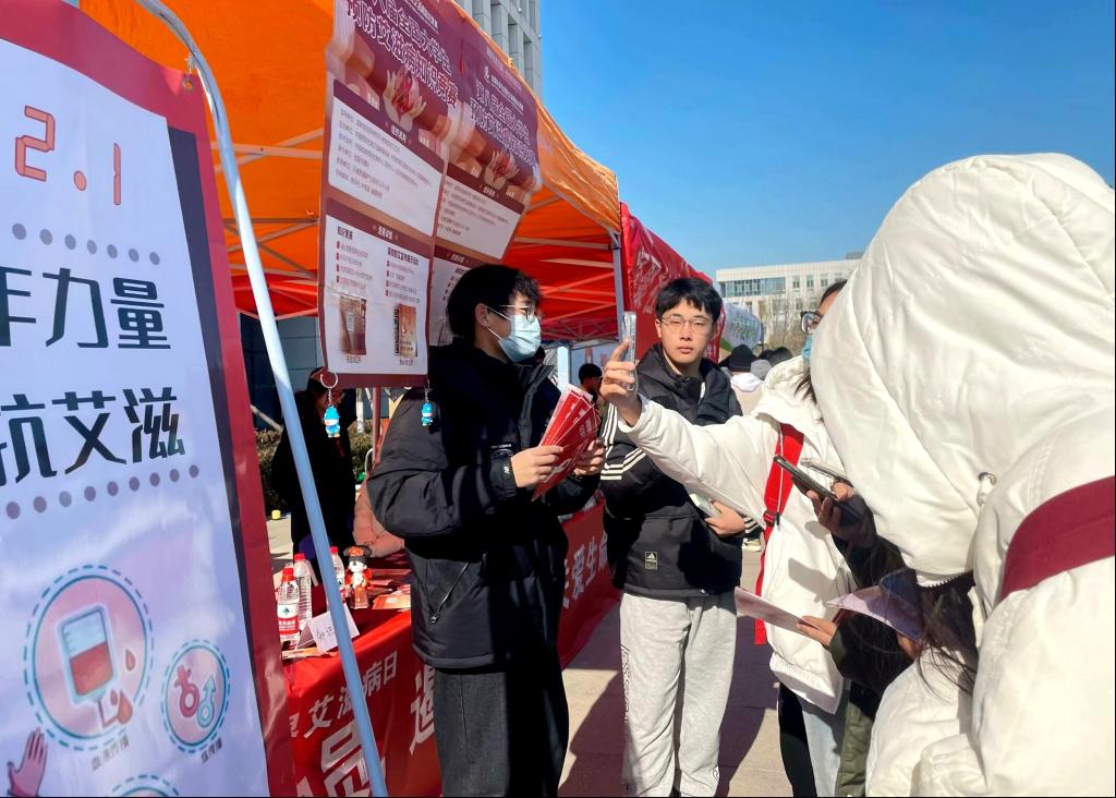 12月1日是第36个“世界艾滋病日”,为有效引导青年学生积极参与到艾滋病防控行动中来,普及艾滋病防治知识,增强学生防治艾滋病的意识和能力,我院学生社团青春健康同伴社在淄博校区开展“凝聚青年力量,合力共抗艾滋”——2023年“世界艾滋病日”主题宣传教育活动。校团委、教务处、淄博校区综合管理办公室、校医院、经济管理学院等部门领导及老师,淄博市周村区疾控中心与周村区总工会工作人员参与本次活动。
