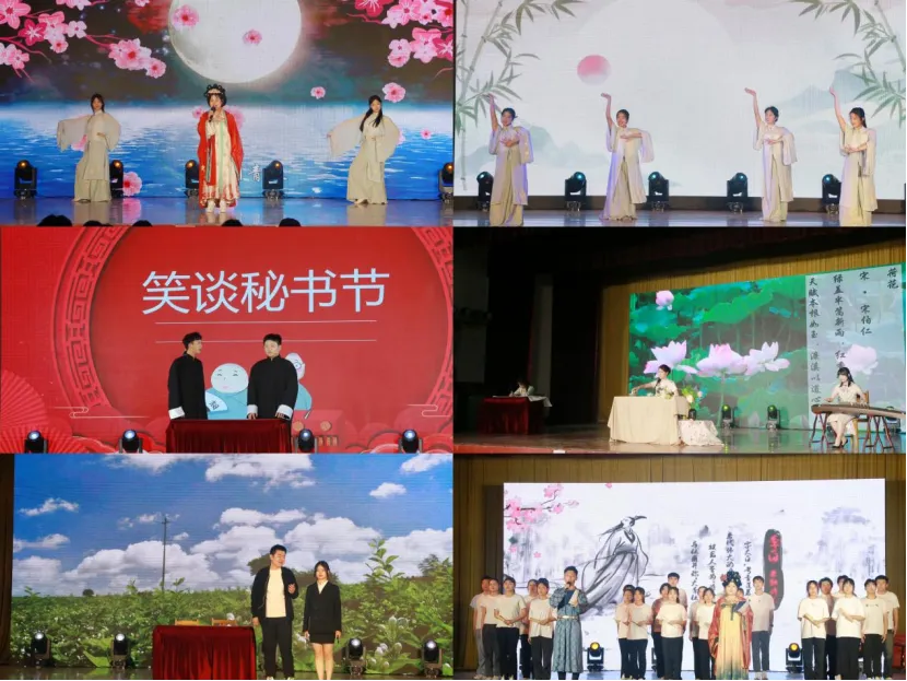 本次活动在《以梦为马》的激昂合唱声中拉开序幕。文宬社的“跨越千年,汉服华章”“现代秘书礼仪操”“女史箴言,厚积流光”展演,超越时空,展现跨越千年的雅致。书画组《莲香茶诗》,以笔墨述说茶文化,为师生带来一场笔墨盛宴。山东管理学院人文学院秘书学专业学生深情朗诵《笔墨行世,翰林华年》,将开幕式活动推向高潮。此外,《振兴花开时》《笑谈秘书》《Tough Work》《但愿人长久》《琵琶行》,以多种艺术形式,展现秘书学学子们的多才多艺、积极向上的精神面貌。最后,开幕式在《唐诗里的中国》集体诵读声中落下帷幕。