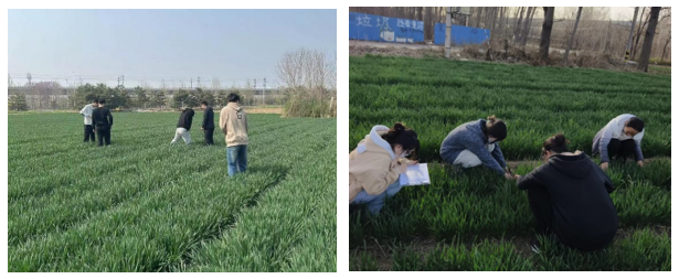 在桓台、周村、高青、惠民、冠县、高唐等地的小麦试验基地,青年学生在团队老师的带领下撸起袖子、戴上手套,顶着烈日,在田间地头有条不紊地进行小麦生长指标测定以及施肥管理等。他们埋头弯腰、挥洒汗水,在劳动中感受劳动的喜悦,体悟农业生产的艰辛。