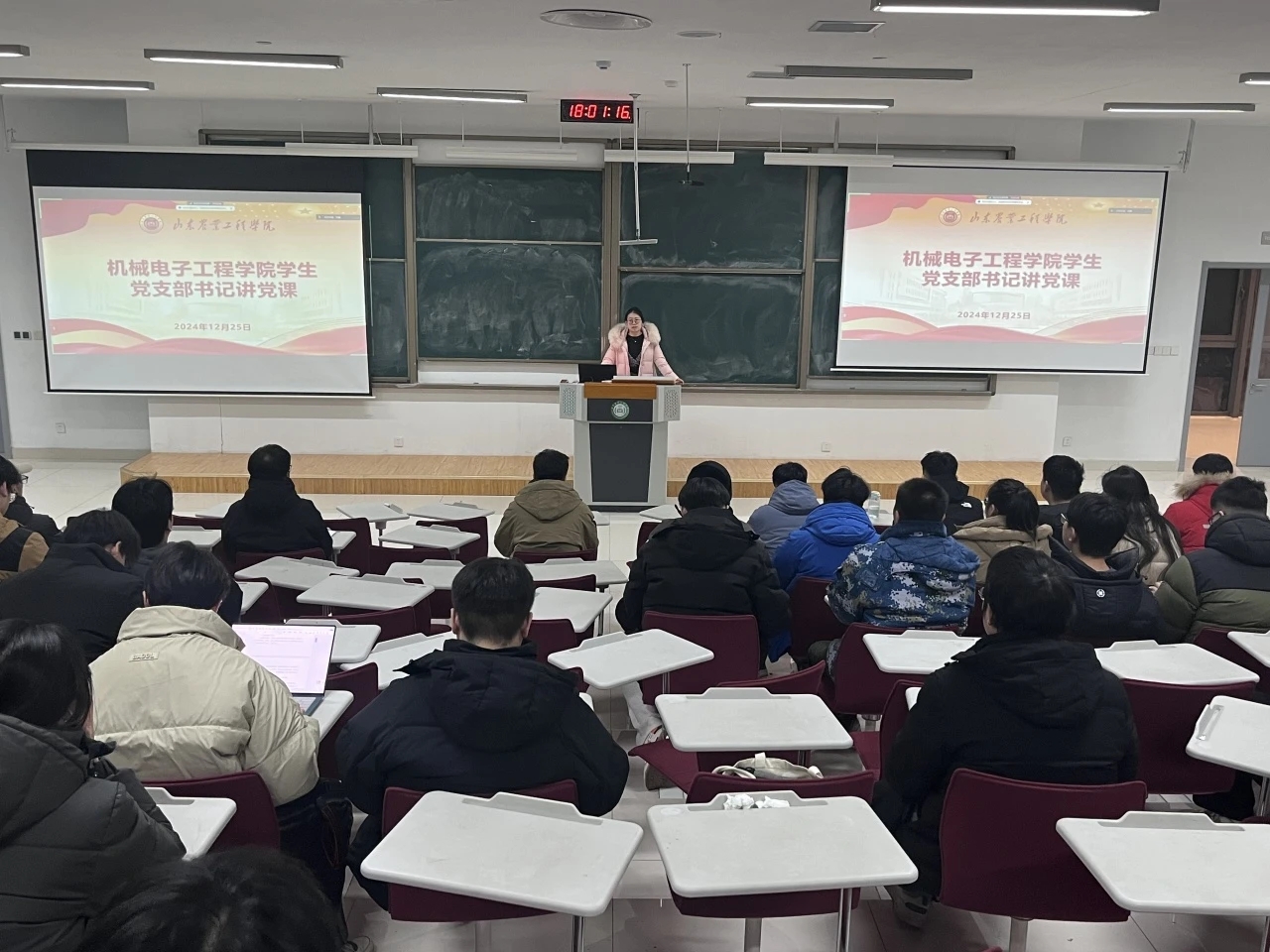为深入贯彻落实党的就业方针政策,充分发挥党建在促进就业工作中的引领作用,2024年12月25日,机械电子工程学院学生第一党支部开展了一场别开生面的支部书记讲党课活动。本次党课以“党建引领就业”为主题,支部全体党员齐聚一堂,共同学习、深入探讨,为扎实推进就业工作汇聚强大的思想动力和组织力量。