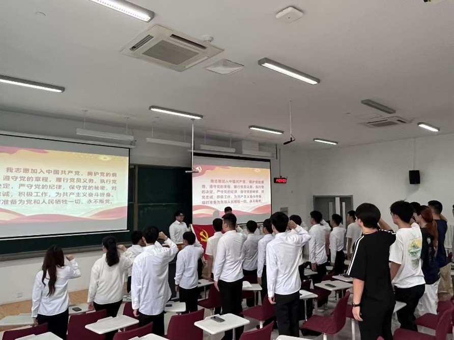 为庆祝中国共产党成立104周年,全面深入学习贯彻习近平新时代中国特色社会主义思想,进一步强化党员党性修养,激发党员的使命感与责任感。机械电子工程学院学生第一、二、三党支部,于7月1日在淄公北楼A104开展 “红心向党迎七一,铮铮誓言践初心”主题党日活动,为新接收预备党员举行入党宣誓仪式,老党员重温入党誓词。