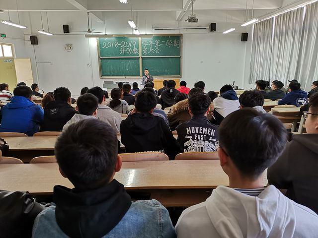 会议由我院党总支书记马勇主持,首先由院团总支书记郑业萌通报上学期学生违纪违规情况,接着由马书记进行开学教育。马书记充分肯定了我院2018年取得的优异成绩,鼓励同学们站在新的起点上,积极投身于学习生活中,紧跟学院新工科改革的步伐,通过适当的增负提升自身的学术能力,积极参与校园活动,提高自我修养,守住安全底线,严守校规校纪,树立远大的目标并付出实际的努力。