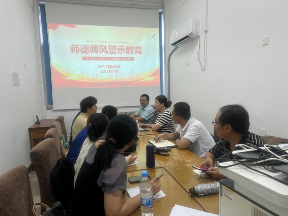 2023年7月13日,电气工程教研室在济南校区教师办公室召开师德师风警示教育工作会议,会议由电气工程教研室主任潘莹月主持,教研室全体教师参加了会议。