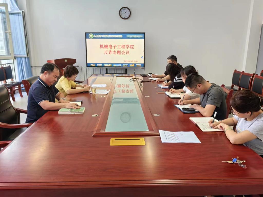 9月21日下午,机械电子工程学院在淄博校区理工东楼B304会议室召开反诈专题工作会议,传达学校反诈会议精神,部署机械电子工程学院反诈工作。会议由党总支书记李艳主持,全体党总支委员、各支部书记参加会议。