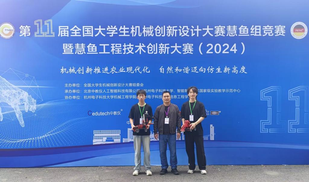 2024年4月19日至21日,第十一届全国大学生机械创新设计大赛慧鱼组竞赛暨慧鱼工程技术创新大赛在杭州电子科技大学圆满落幕,有来自全国221所高校的721个慧鱼创新团队参加竞争。经过激烈角逐,由机械电子工程学院同学设计制作的《绿色智能茄子采摘机》和《AI视觉萝卜“收——装”一体机》两件作品均荣获全国三等奖的好成绩。