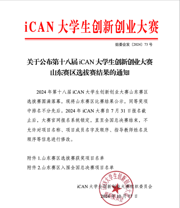 10月12日,第十八届iCAN大学生创新创业大赛山东赛区选拔赛在聊城大学落下帷幕,bat365机械电子工程学院、信息科学与工程学院、国土资源与测绘工程学院、商学院、人文学院等共计100余支队伍报名参加,经过校赛,bat36530支队伍经过线上初评及现场比赛,共获得一等奖3项、二等奖3项、三等奖6项,3支参赛队入围全国总决赛。
