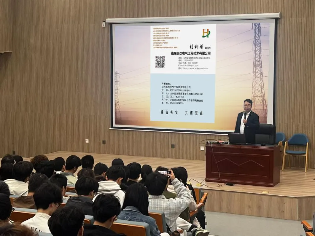 随后,刘相刚结合自身经历开展了创新创业讲座。他以自己的求学经历为切入点,向大家讲述了自己从求学到创办企业的经历。他特别强调了在大学生活中应该树立目标,努力学习,学会忍耐孤独、抵制诱惑,专注于自身的成长,做好自己学业和职业规划。同时,他结合电气行业的发展趋势,深入剖析了创新的方向和创业的机遇。他鼓励同学们紧跟时代的步伐,关注行业的发展动态,将所学知识运用到实际中,积极投身实践,勇敢地在新兴领域开拓自己的未来。