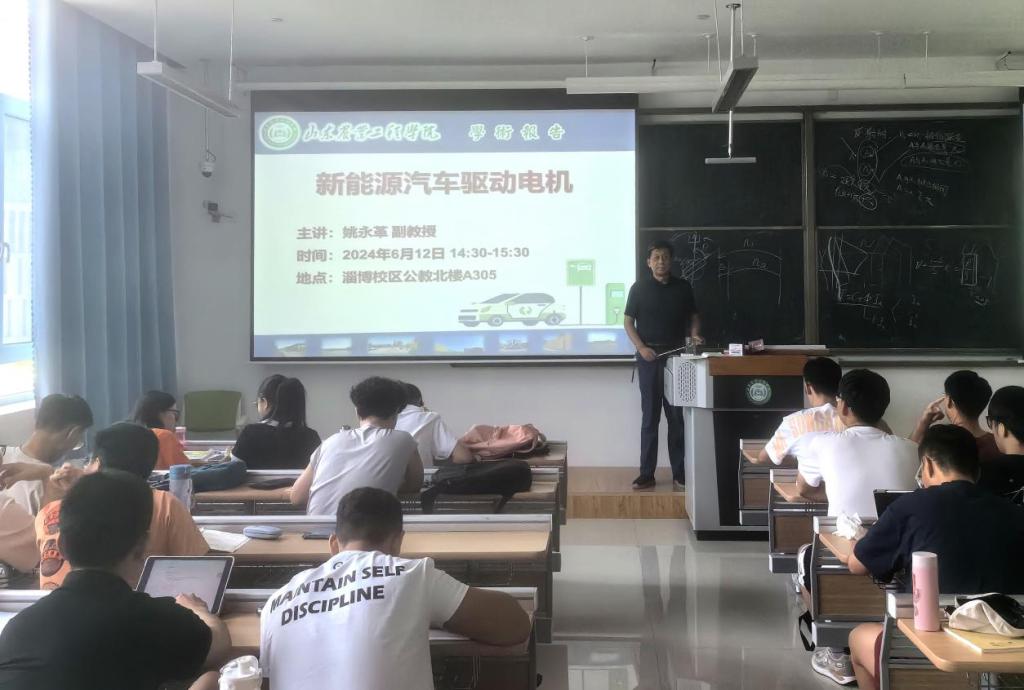 6月12日,机械电子工程学院姚永革副教授在淄博校区公教北楼A305室举办“新能源汽车驱动电机”学术讲座,学校80余名师生参加此次讲座。