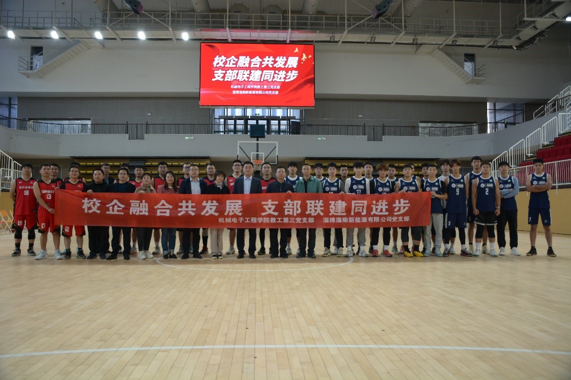 在交流过后,我院篮球队与企业篮球队在淄博校区体育馆内进行了一场友谊赛。活跃了校企两个基层党支部互联共建的融洽气氛,凝聚了党员间互敬互爱的团队精神,展现了党员同志们朝气蓬勃的精神风貌,提振了拼搏奋斗、永不言弃的顽强意志,达到了相互交流、互促共进的目的,为“校企融合共发展”打下了良好基础,更为“支部联建同进步”奠定了根基。