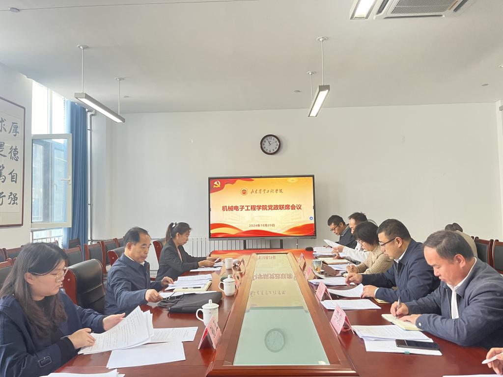 10月29日上午,党委副书记、校长李进京列席机械电子工程学院党总支会议、党政联席会议并调研指导工作。机械电子工程学院全体党总支委员、各党支部书记、教研室主任及科级上干部参加会议,校党委(学院)办公室副主任朱蕾蕾、党委组织部(党校、巡察办公室)组织科科长孙亚列席会议。