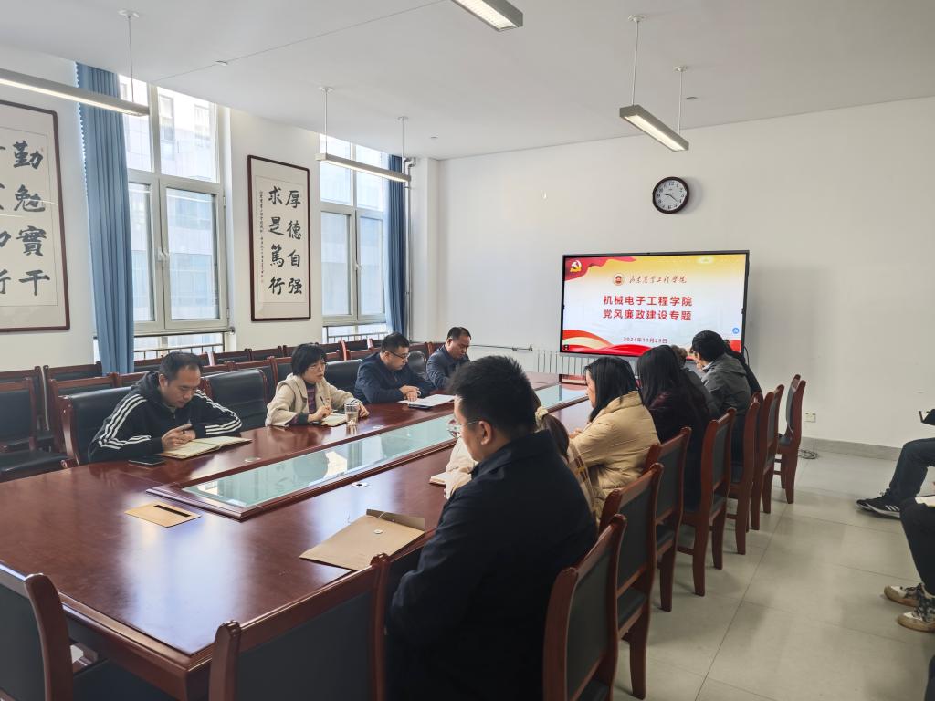 为深入贯彻落实全面从严治党要求,强化学院党风廉政建设,筑牢廉洁自律防线,提升教职工廉洁意识,机械电子工程学院于11月25日下午在B304会议室召开了党风廉政建设专题会议。学院领导班子、全体教职工参会,会议由党总支副书记赵侃主持。