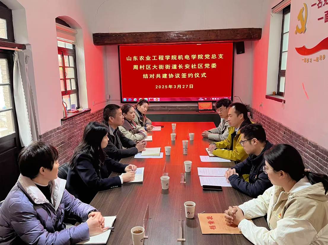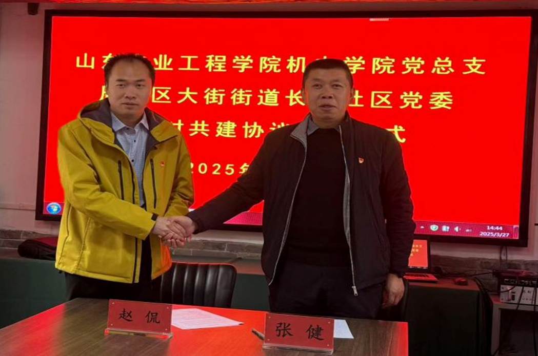 为深入贯彻落实党的二十大和二十届二中、三中全会精神,强化党建引领作用,深化党建工作内涵,积极推动学校与社区互联互动、共建共享工作。3月26日下午,我院学生第一、二、三党支部与周村区大街街道长安社区隆重举行党建共建签约仪式。学院党总支副书记赵侃、学生支部代表、周村区大街街道党工委副书记商淑真、长安社区书记张健及社区相关工作人员出席此次签约仪式。