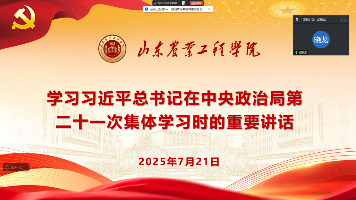 为深入贯彻中央八项规定及其实施细则精神,认真学习习近平总书记在中央政治局第二十一次集体学习时的重要讲话,我院学生第一、二、三党支部于7月21日,在线上开展“深化自我革命 锻造坚强堡垒 在新时代赶考路上勇毅前行”专题党课,深入学习习近平总书记重要讲话精神。本次党课由学生第三党支部书记胡晓龙主讲,支部全体党员参加。