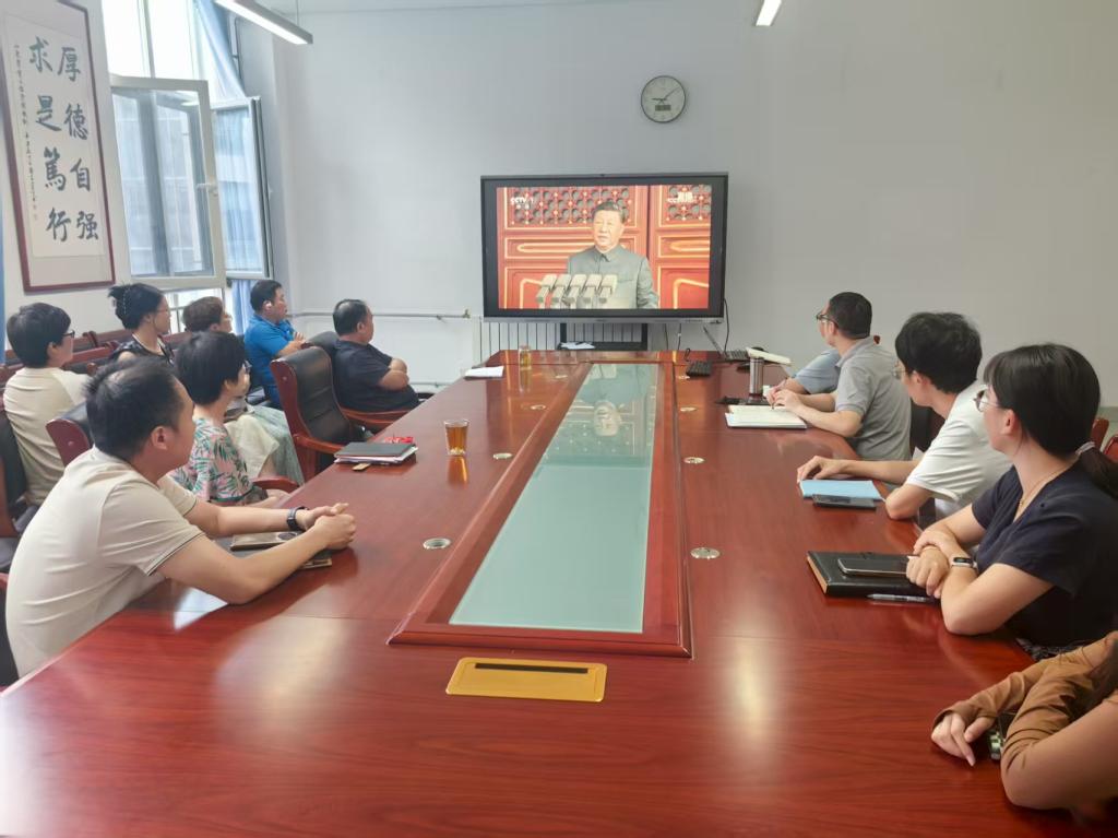 9月3日上午,纪念中国人民抗日战争暨世界反法西斯战争胜利80周年阅兵式在北京天安门广场隆重举行。为弘扬爱国主义精神,厚植家国情怀,铭记历史征程,激发使命担当,我院组织教职工在淄博校区B304会议室集中观看直播盛况。