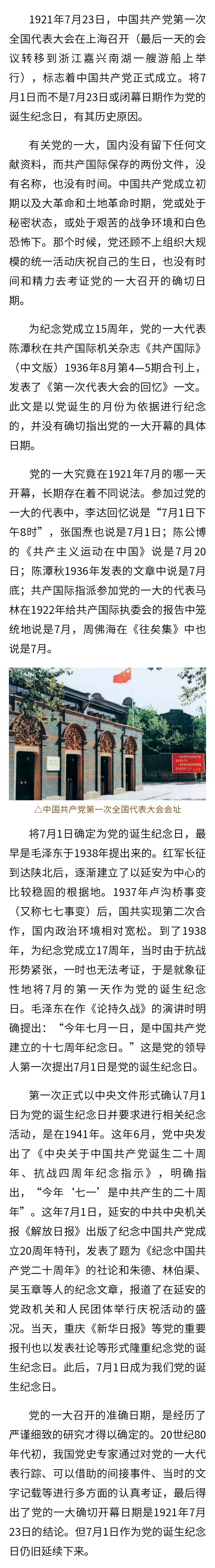 每日早读丨中国共产党成立于1921年7月23日,为什么7月1日是党的诞生纪念日?