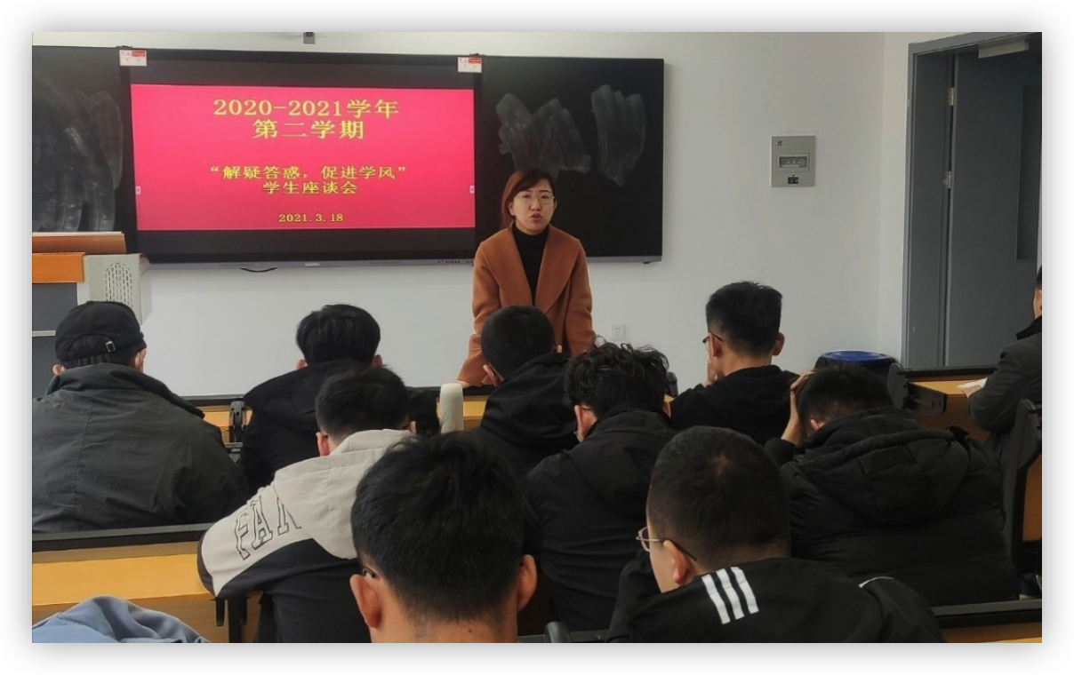 本次座谈会由各年级辅导员老师以及班主任老师共同主持,目的在于解决同学们在新学期、新环境中遇到的学习问题以及生活问题,提高同学们的学习意识,让加强学风建设的观念深入每个人心中。因此,结合各班实际情况,针对同学们在学习过程中出现的学习懈怠情况、生活中遇到的各种问题,各年级的辅导员老师与班主任老师都进行了一一解答,同时就各个班级今后的工作活动计划同大家进行了深入的交流,让大家对建设优良学风的工作思路有了更加清晰的认识。