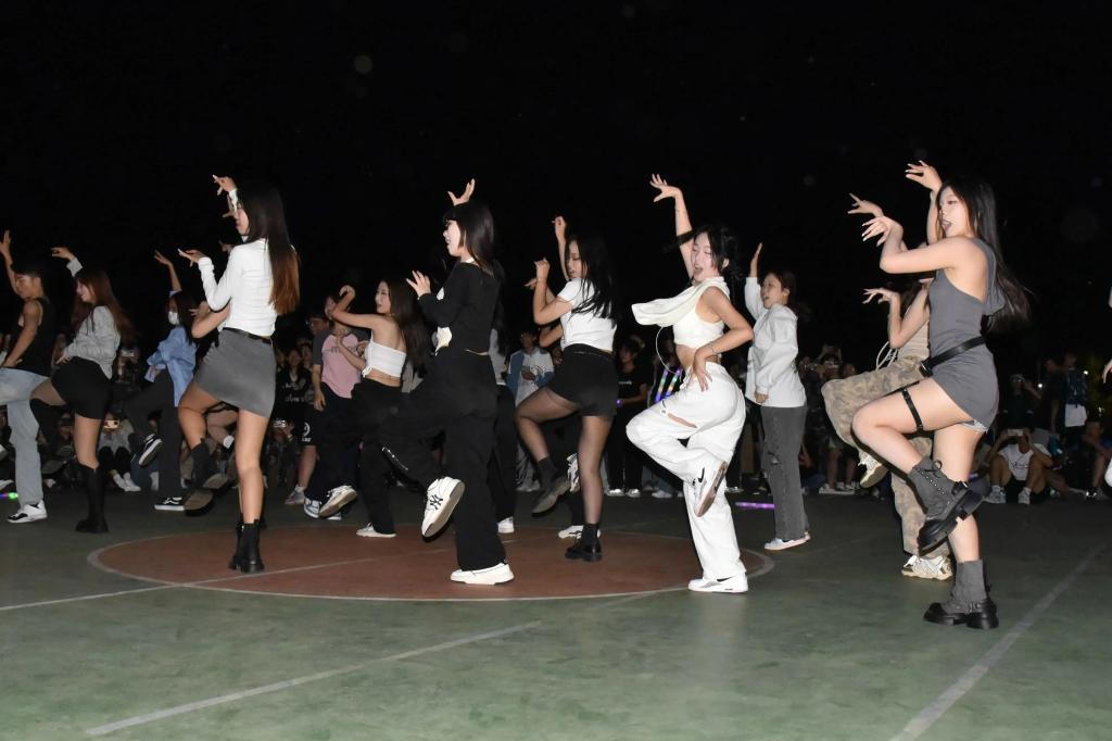 夜幕降临,伴着节奏轻快的背景音乐,随舞活动拉开序幕。此次活动分为两个环节。首先进行路演,篮球场上的舞蹈爱好者伴随着音乐大胆展现自己,干练有力的动作,点燃了活动现场,也点燃了现场每一位观众的热情,欢呼声、掌声和歌曲交织,青春之花完美绽放。随后进行随机舞蹈,随着歌曲一首又一首地变换,同学们纷纷跑向舞台,她们在欢快的节奏中跳跃,尽情展现舞蹈的魅力,用自信的笑容和欢快的舞姿惊艳全场,观众的掌声接连不断,全场的氛围逐渐升温,欢呼声此起彼伏。今晚,舞蹈爱好者们将这份对舞蹈真挚的爱推向高潮,燃动青春,热爱永不谢幕!