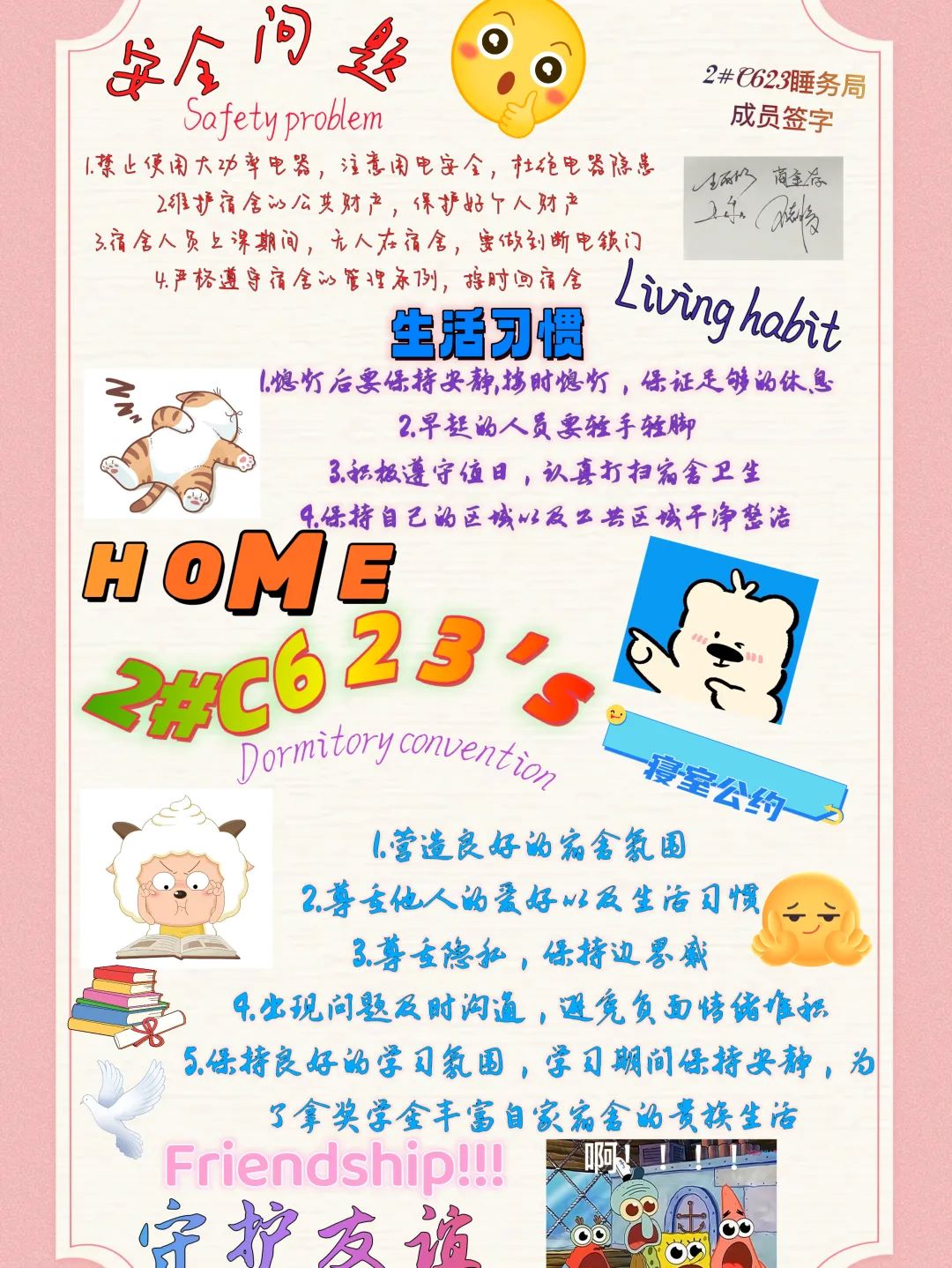 为加强学生宿舍内涵建设,营造积极、健康、和谐、进取的宿舍文化氛围,促进文明舍风的养成,机械电子工程学院于4月12日至4月16日举办一往“寝”深宿舍文明公约设计比赛。此次比赛由我院学生会生活部举办。