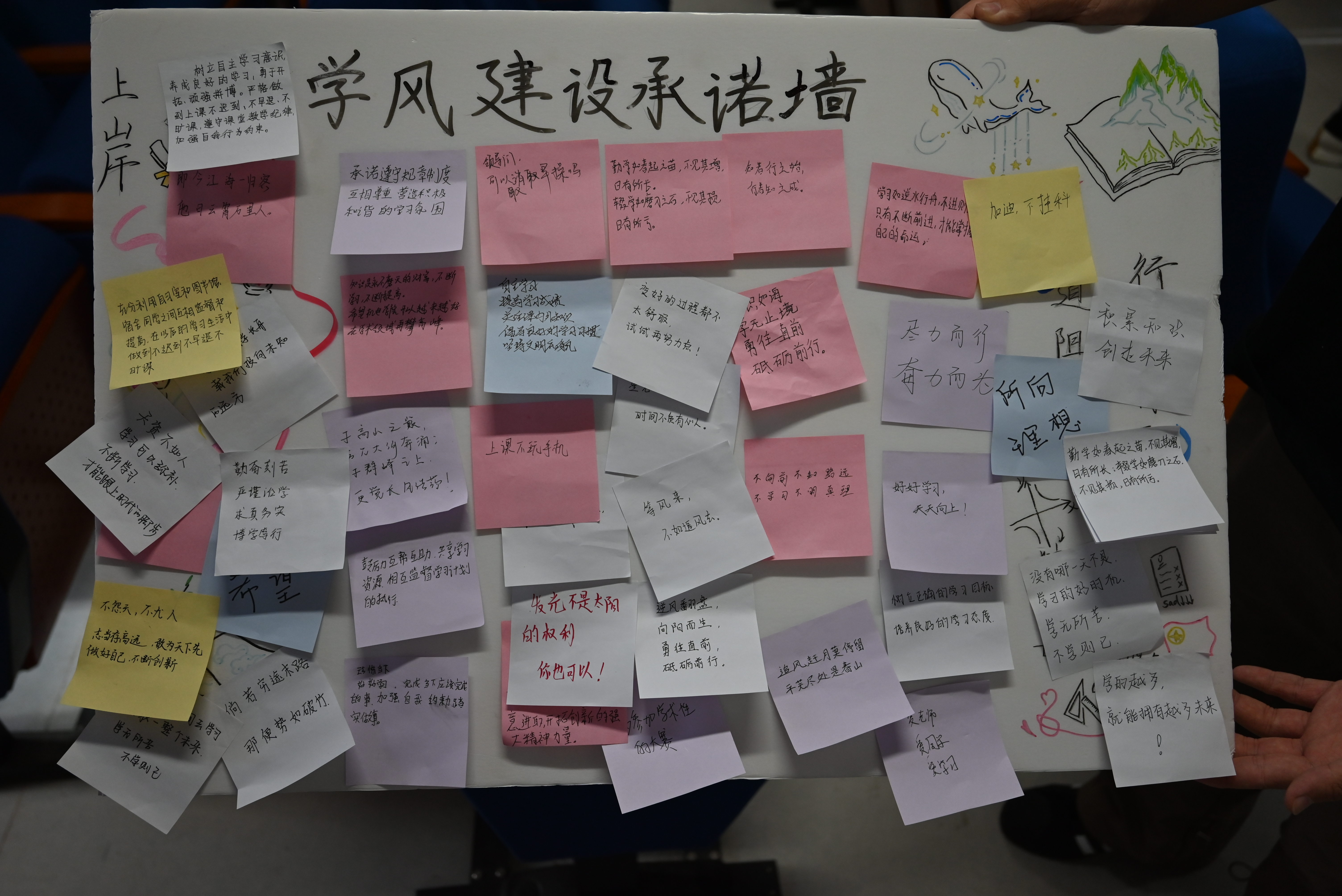 最后,每一位参与大会的同学都将个人对于学风建设的独到见解写下来并粘贴在学风建设承诺墙上。至此,“标杆引领、勤学力行、共创学风”学风建设表彰大会落下圆满的帷幕。