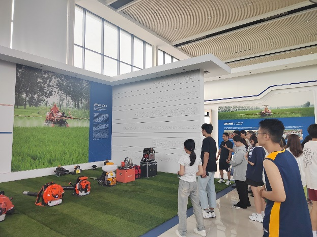 首先,团队参观了智能农机装备展示区。展区陈列了割草机、喷药机、汽油机等先进农机,企业技术人员详细讲解了各产品的工作原理、当前发展现状、存在的主要问题、未来发展趋势等。