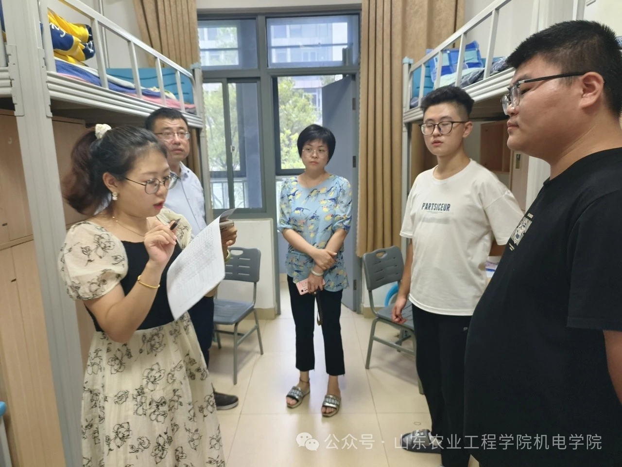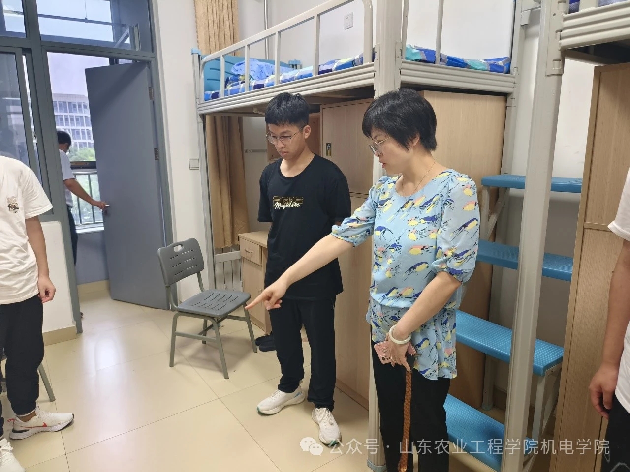 走访过程中,李艳书记、赵志桓院长和秦玉莹老师对新生的到来表示热烈欢迎,亲切询问同学们入校后的适应状况,耐心倾听同学们的心声并解答疑问,鼓励新生们尽快适应新环境,积极融入大学生活。随后,院领导仔细检查了宿舍设施安全、卫生情况以及消防安全,对发现的问题当场提出整改意见,并给出几点建议:一是要做好宿舍卫生整洁,及时清理垃圾;二是注意作息时间与安全问题,养成良好作息习惯,非必要不外出;三是宿舍同学之间应加强交流学习,不论专业是否相同,知识皆可互通。新同学们纷纷表示,会积极适应校园生活,努力学习专业知识,不负青春韶华。