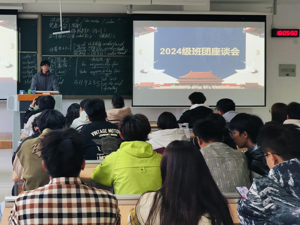 座谈会上,封智轩为24级各班班团介绍我院各位领导以及辅导员,希望同学们之后能积极配合我院老师各项工作,推动我院班级学风建设。学生会主席王宇勋发表讲话。王宇勋主要围绕班级管理、人际交往、评奖评优以及个人发展等方面的问题为大家进行了介绍和交流,同时结合班团情况提出了增强班级凝聚力和提升班风学风方面的建议。希望各班班团始终不忘初心,在各方面严格要求自己,发挥模范引领作用,积极做好各项工作。与会班团干部们纷纷表示,将以更加饱满的热情和更加扎实的工作作风,为学院的发展贡献自己的力量。