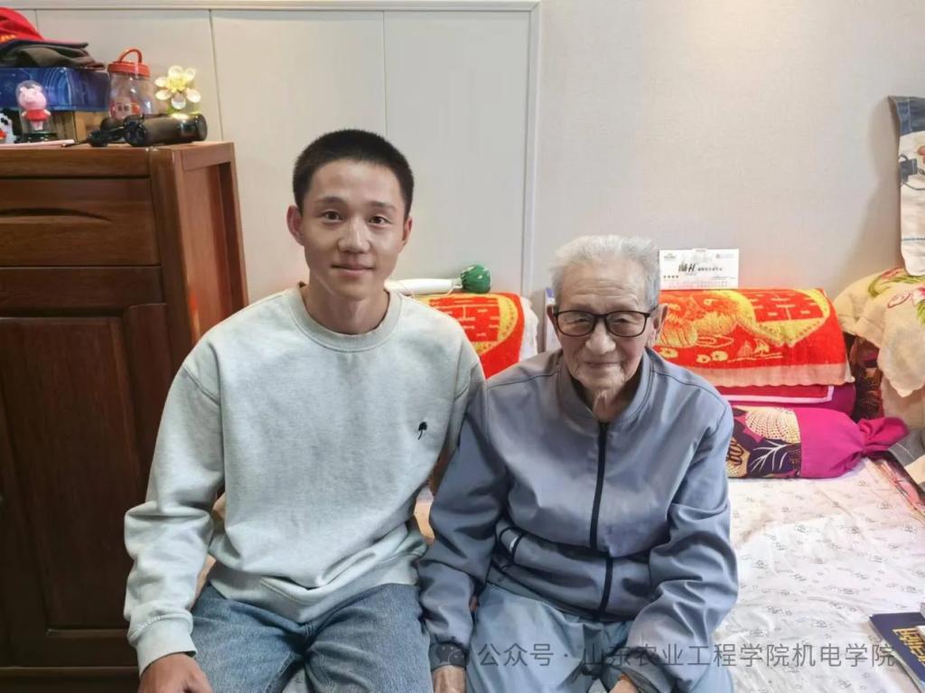 本次走访带着青年党团员的热忱和敬意,前往革命老战士徐源川的家中,聆听老兵故事,感悟爱国热情。徐老先生1939年随父参加抗日,参加过莱芜战役、孟良崮战役、南麻临朐战役、胶东保卫战、潍县战役、济南战役、淮海战役、渡江战役、上海战役。1951年11月入朝参战,参加第二次战役围歼美陆战一师的战斗。在与徐老先生的对话中,徐老先生分享了他的参战经历以及艰苦斗争的故事。同学们认真聆听徐老先生讲述往昔战场上的亲身经历,近距离地感受到了战争的残酷,以及中国军人保家卫国、视死如归、浴血奋战的英雄气概。大家纷纷表示,要继承革命先辈的光荣传统,努力奋进,以实际行动传承红色基因,厚植爱国情怀,立志成为担当民族复兴大任的时代新人。