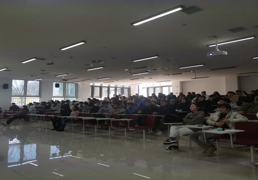 20231225日下午经济管理学院在淄博校区淄公南楼B102教室举办中国通信服务山东公司招聘宣讲会,我院院长李百秀、物流教研室主任陈岱莲、辅导员曹奇以及2024届物流工程专业学生参加此次宣讲会。