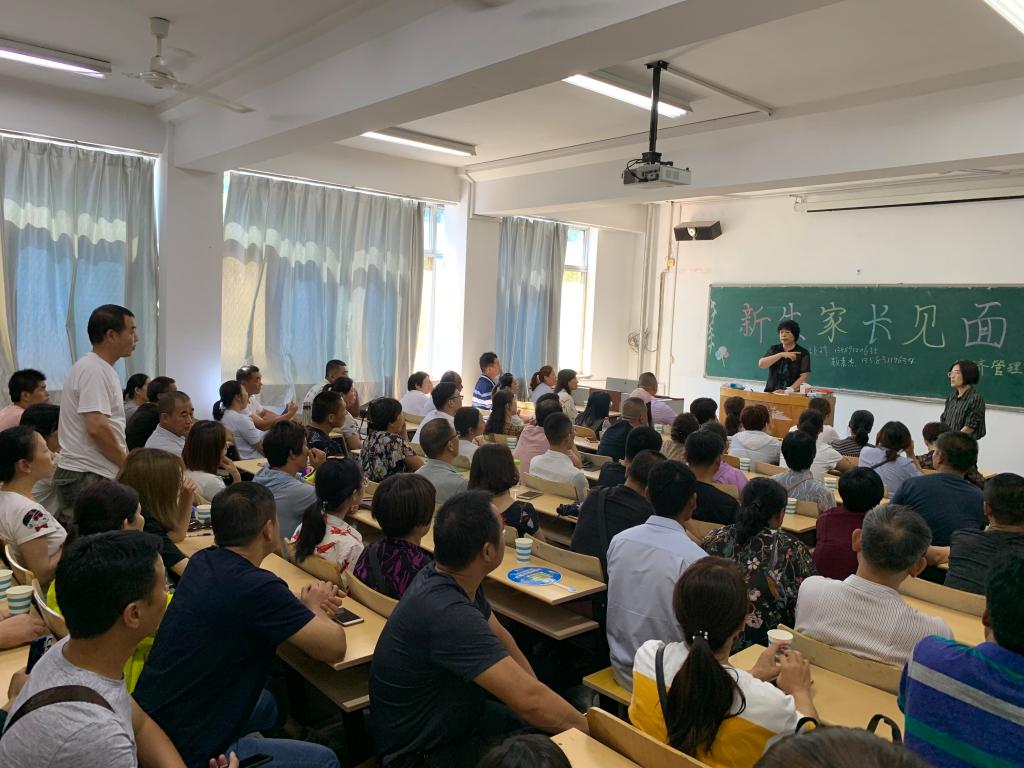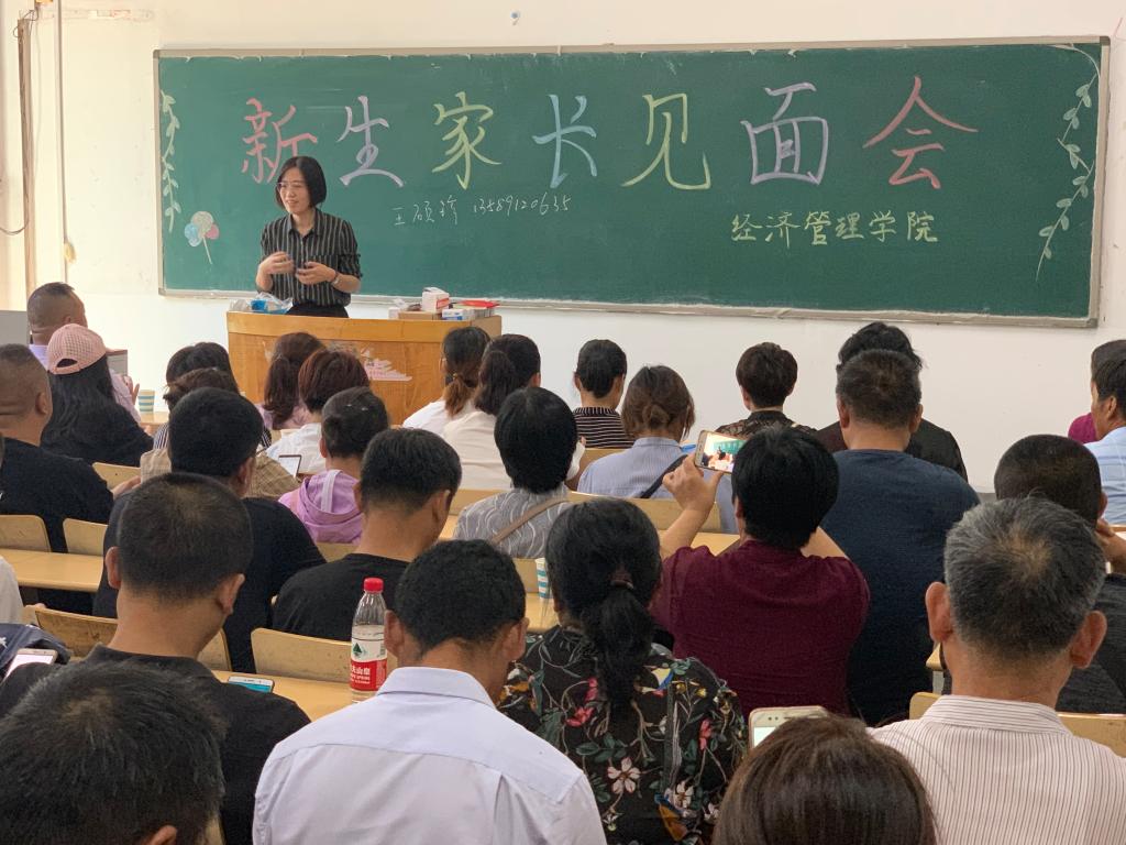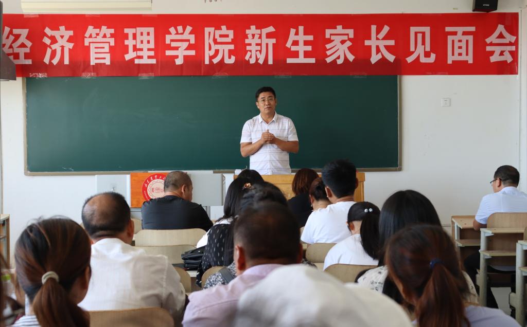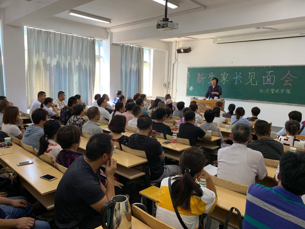 8月30日上午,经济管理学院分别在济南、济北校区召开2019级新生家长见面会,院党总支书记颜素杰、院长李百秀、学生管理科科长周海霞、教学秘书李飞、政治辅导员王硕珍在济南校区和新生家长参加活动;副书记杜锋、政治辅导员张娟在北校区参加活动,与新生家长进行了面对面的沟通。
