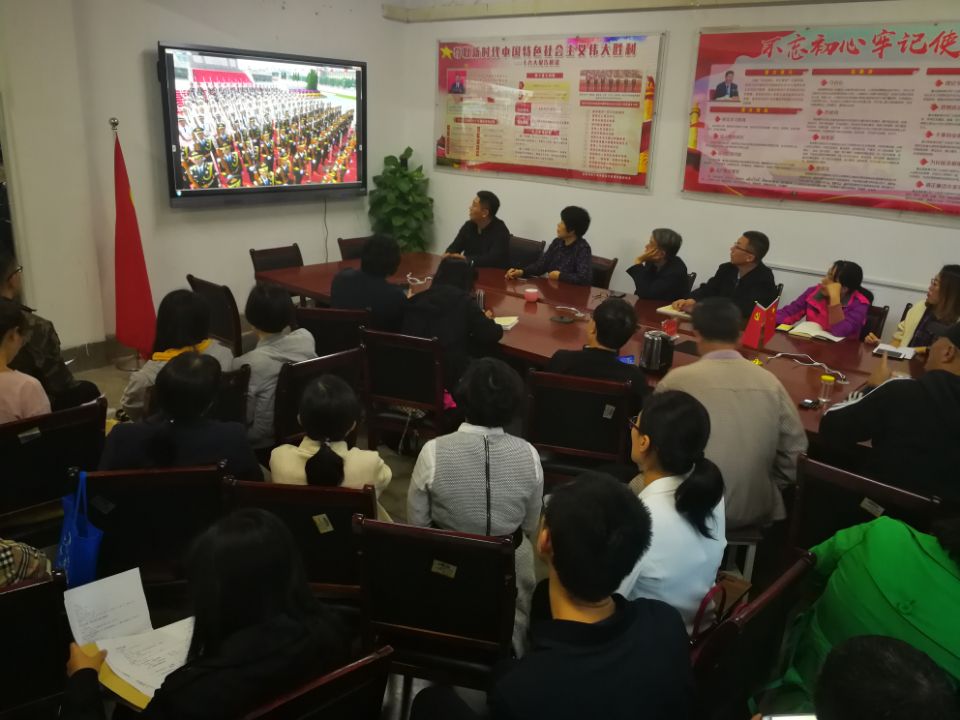 在讨论会上,党总支副书记杜峰说:“今天,观看了习近平总书记在国庆70周年发表的重要讲话和国庆阅兵式,很受震撼,让我们看到了国家日益强盛,同时也更加坚定不移的坚持党的领导,坚定了永远听党的话,跟党走的决心。”