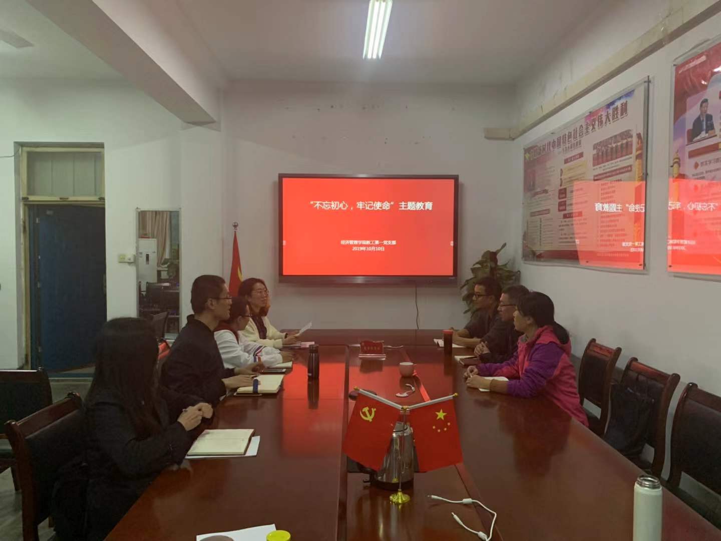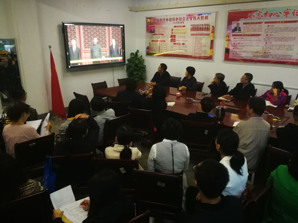 10月10日下午,经济管理学院教工第一党支部在党建活动室和全院党员一起观看了庆祝新中国成立70周年阅兵式,收看阅兵式后围绕 “理想信念”专题进行集中学习研讨,支部书记曲文俏主持研讨会。