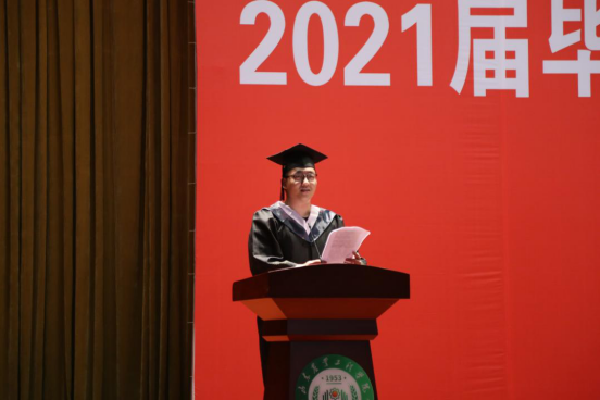 2021毕业生代表韩文九虎在发言中表示,学校让我们从羽翼未丰的少年成为堪当社会脊梁的青年,赋予了我们知识、技能、荣誉、志向和梦想。在以后的学习、工作生活当中会一直秉持学校的教诲,为祖国的美好建设发光发热。