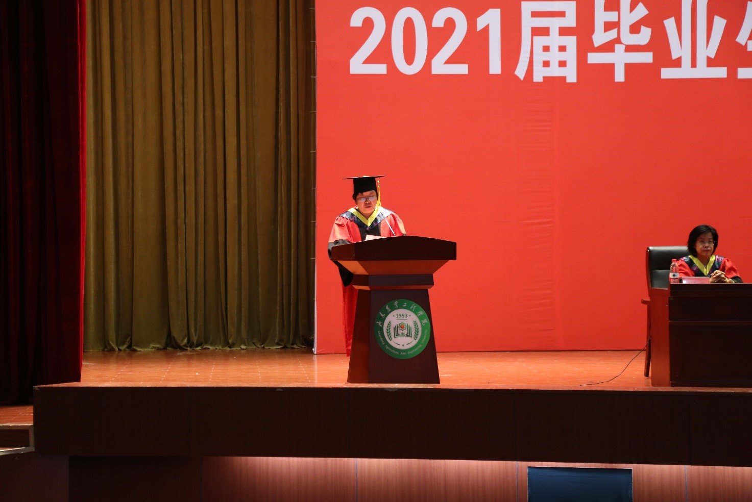 李百秀院长宣读校学位评定委员会《关于授予2021届首批本科毕业生蔡厚彬等1813名学生学士学位的决定》。