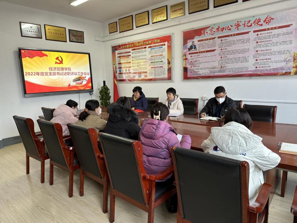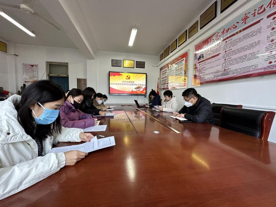 2月10日,经济管理学院2022年度党支部书记履行全面从严治党责任和抓基层党建工作现场述职评议会议在党建活动室召开。党总支书记颜素杰主持会议并作点评讲话。党总支委员,各党支部书记,组织员,教师代表参加会议。