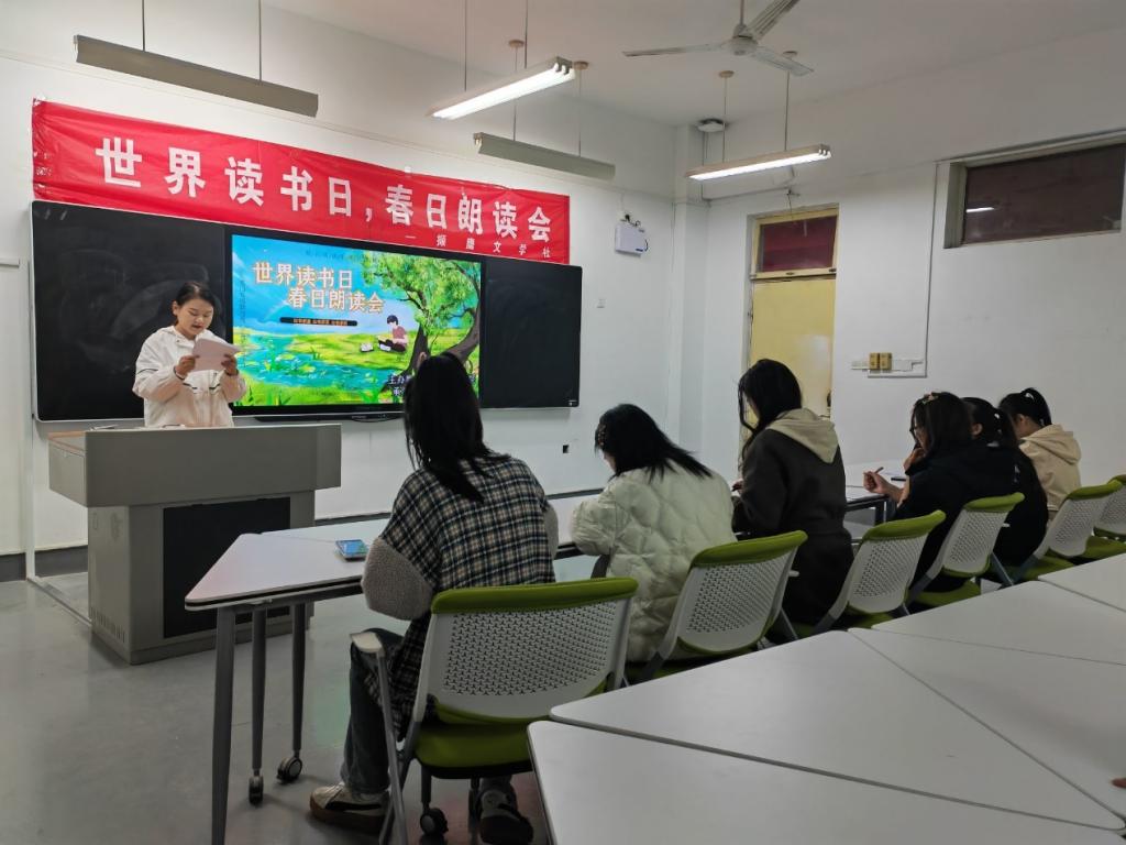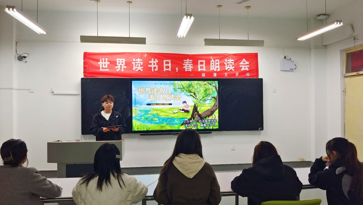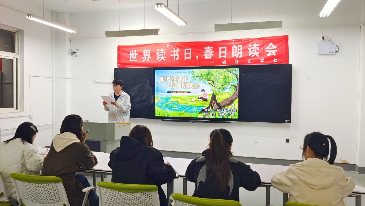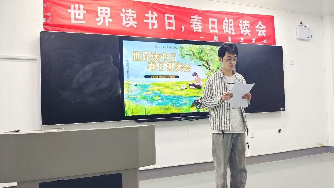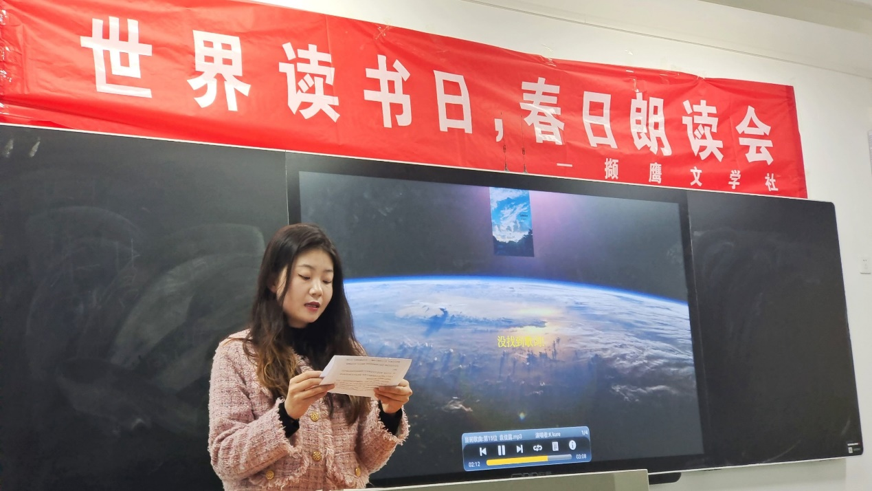 春意盎然,惠风和畅。在这一年中最美好的季节里,我们迎来了书香飘韵的四月,在第28个世界读书日来临之际,撷鹰文学社于4月21日在齐河校区2教510教室展开了一场别开生面的“世界读书日,春日朗读会”活动。