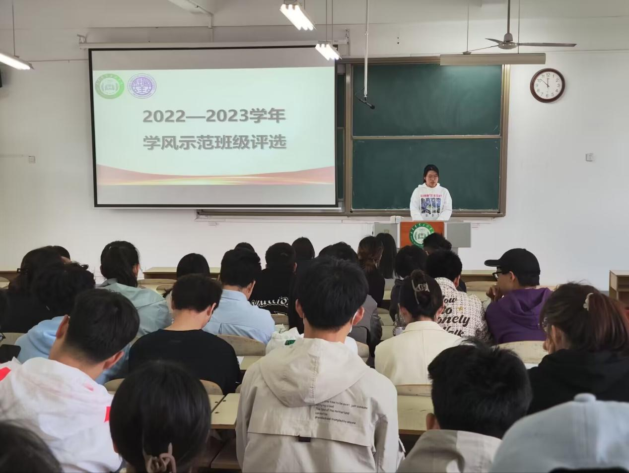 评选过程中,各班级代表依次上台,对各自班级的学风情况、班级建设、特色活动等方面进行了详细的介绍。参评班级立足实际情况,以问题为导向,集思广益,制定班级特色制度,进一步强化了集体荣誉感和班级主人翁的意识,为其他班级的管理模式树立了良好的榜样。