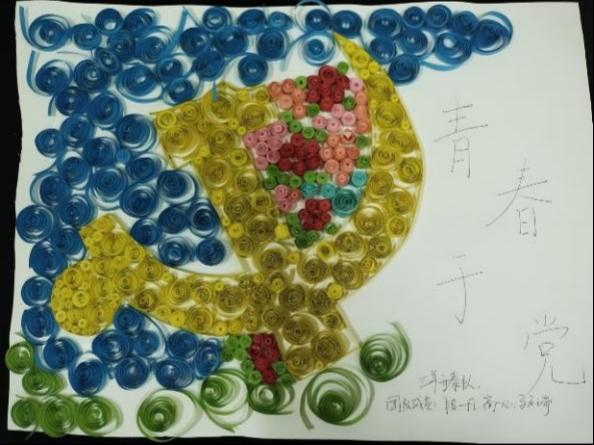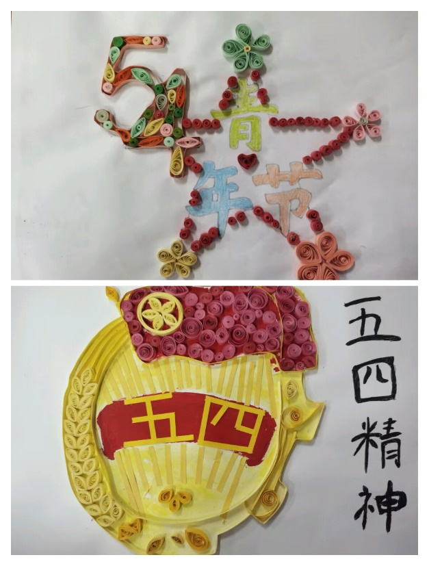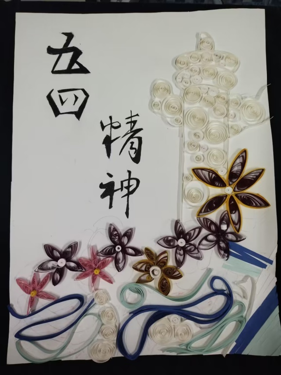 活动现场欢快热闹,同学们全神贯注,用创作的方式赋予衍纸以青春活力。在同学们的巧妙构思和“妙手”创作下,卷动、揉捏、拼接、组合而成的手工艺品精巧绝伦、鲜活饱满。同学们在衍纸作品中致敬五四运动,践行自己热爱祖国、积极创新、勇于探索的青春誓言。