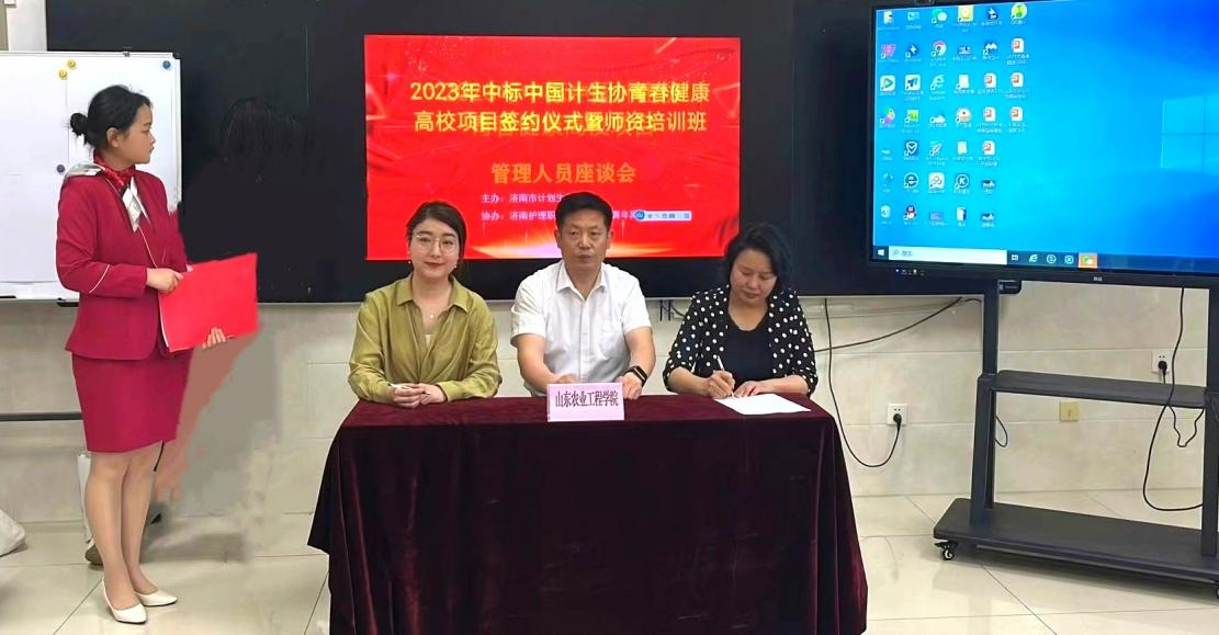 省计生协、市计生协和11所中标高校举办签约仪式,张娟老师作为中标高校项目负责人与市计生协会签订《项目协议书》。