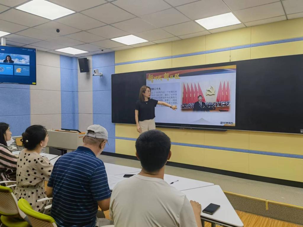 曲文俏以《立志复兴伟业踔厉奋发前行》为题,从永载史册的伟大变革、引领复兴的宏伟蓝图、笃行不怠的战略定力三个方面来阐述新时代的伟大变革及其里程碑意义,解读党的二十大主题的深刻内涵,党和国家事业所处的新方位、谋划的新目标、制定的新部署,前进道路上应对风险挑战的战略定力等。
