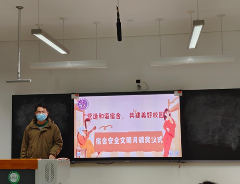 2023年12月4日,经济管理学院在淄博校区文法西楼A312教室举行“宿舍卫生安全文明月”活动颁奖仪式。经济管理学院辅导员王永瑞出席本次颁奖仪式。