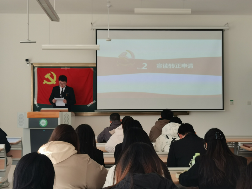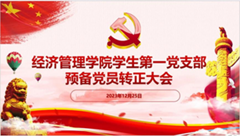 2023年12月25日下午,经济管理学院学生第一党支部在文法楼B105召开预备党员转正大会。讨论李金浩,高翔等6名预备党员的转正问题,支部书记李娜主持了这次大会,学生第一党支部全体党员参加会议。