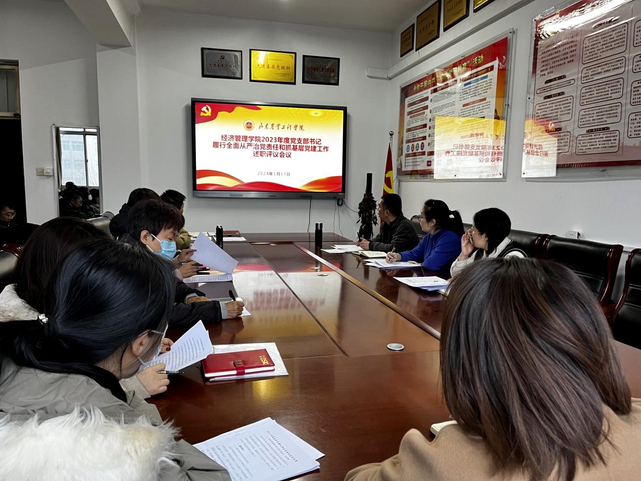 2024年1月17日,经济管理学院2023年度党支部书记履行全面从严治党责任和抓基层党建工作述职评议会议在济南校区1号教学楼311党建活动室召开。党总支书记马勇主持会议,学校列席旁听工作组李华、李伟列席旁听。党总支委员,各党支部书记,组织员,全体党员参加会议。