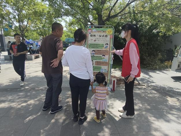 在“烧烤仪式,餐饮志愿”餐饮倡议环节,志愿者积极引导游客在享受美食之后主动清理餐桌,共同维护公共环境卫生,展现公民的高素质和社会责任感。