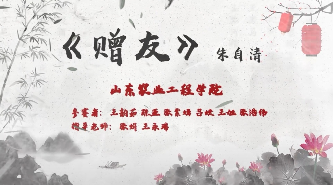 自活动开展以来,在校团委指导下,我院学生社团青春健康同伴社积极承办校赛选拔,精心组织开展校内初赛、复赛、决赛,广泛发动在校学生参加本次活动。我院辅导员张娟、王永瑞指导校赛一等奖《赠友》团队认真打磨作品,以新颖的形式诠释了青年一代对友情的独特理解,格调高雅,贴合主旨,用语言传递中华经典,展现当代青年积极向上的精神风貌和弘扬传统文化的责任担当。