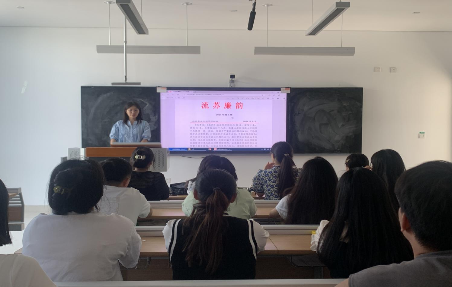 本次活动聚焦于深入研读《流苏廉韵》第五期文件,活动开始前,刘文娟老师指出《流苏廉韵》第五期文件是每位党员修身养性的重要指南。通过对《流苏廉韵》第五期文件的认真学习,党员同志们要进一步树立正确的权力观和利益观,以更加坚定的信念投身到党和人民的伟大事业中去,为实现中华民族的伟大复兴贡献智慧与力量。